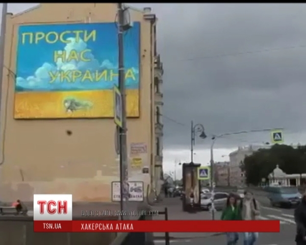 В центре Питера хакеры "прорекламировали" события на Донбассе с призывом "Прости нам, Украина"