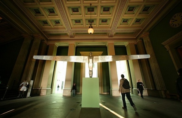 Работа Энтони Гормли «Ангел 1» — скульптура с размахом крыльев 9 метров — полностью заняла огромный зал, построенный недавно под стеклянной крышей вестибюля Британского музея.