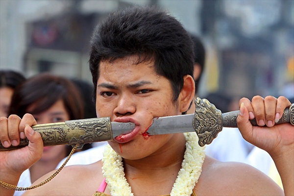Перед началом самоистязаний многие впадают в транс, причем некоторые — до такой степени, что могут взобраться по десятиметровой лестнице с лезвиями вместо ступеней, не оставив на них ни капли крови.