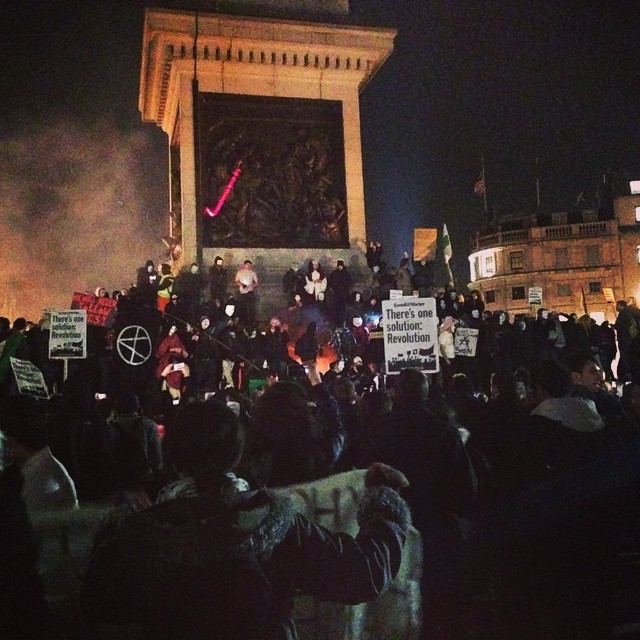 Вечером и ночью с 5 на 6 ноября во многих городах мира прошёл ежегодный «Марш миллиона масок», поддерживаемый движением Anonymous и традиционно привлекающий самый широкий спектр «несогласных», от антикапиталистов до представителей пропалестинских движений. В Лондоне, как сообщает The Guardian, он вылился в беспорядки.