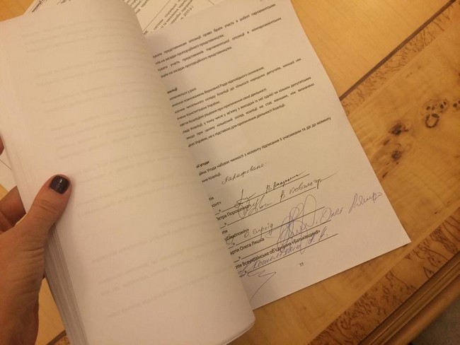 Некоторые избранные нардепы на своих страницах в Facebook опубликовали фотографии со встречи политсил, на которой было парафировано соглашение.