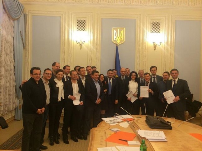 В коалицию вошли Народный фронт, Блок Петра Порошенко, Самопомич, Радикальная партия Олега Ляшко и Батькивщина. Вне большинства - Оппозиционный блок.