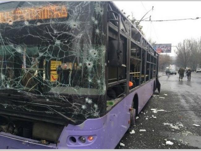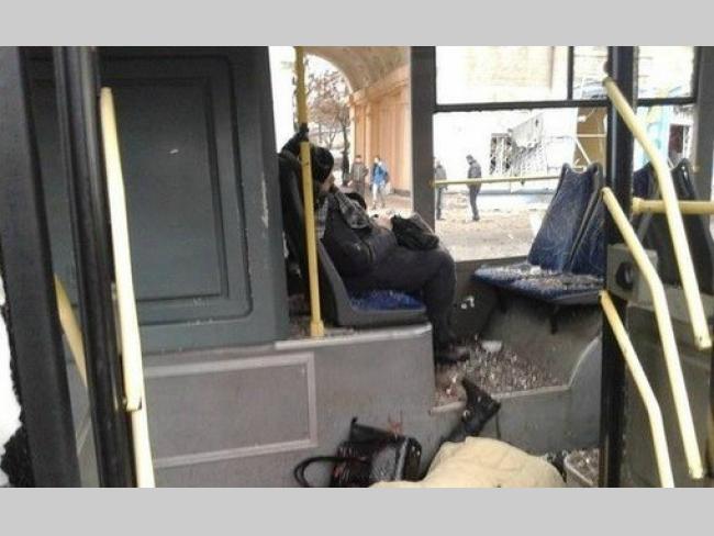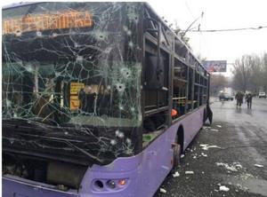 Сайт Донецкой горадминистрации сообщает, что при обстреле "в районе Боссе поврежден трамвай №3, ранена женщина-водитель", а вследствие "прямого попадания" в 17 троллейбус "погибло 7 человек", также от обстрела автобуса №37 есть погибшие и раненные.