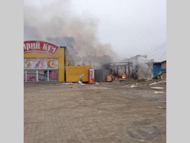 Снаряд попал в район Киевского рынка, сообщают очевидцы.