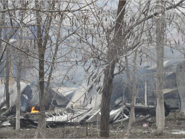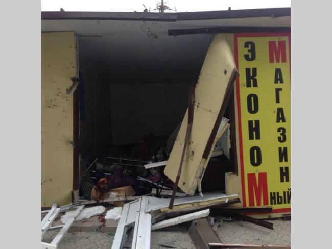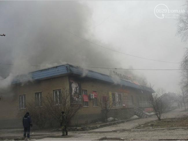 Одноэтажный магазин "Детский мир" полностью разрушено прямым попаданием снаряда, горит церковь на Восточном.