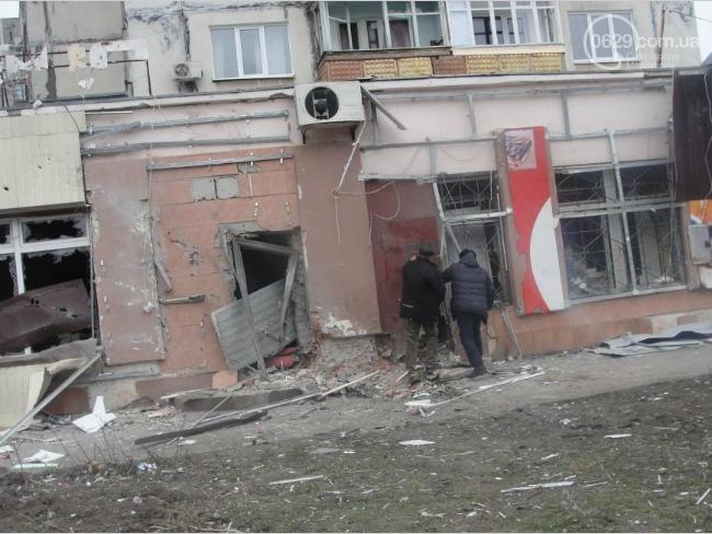 По словам местных жителей, попадание в супермаркет "Сельпо" и рынок "Киевский",пострадали жилые дома.Пропала связь. Во многих домах нет света....горит 5 школа,14-этажка по ул 9 мая угол дома снесло,выбиты стекла в домах, убита женщина возле 187 дома ул.Олимпийская,горят частные дома.