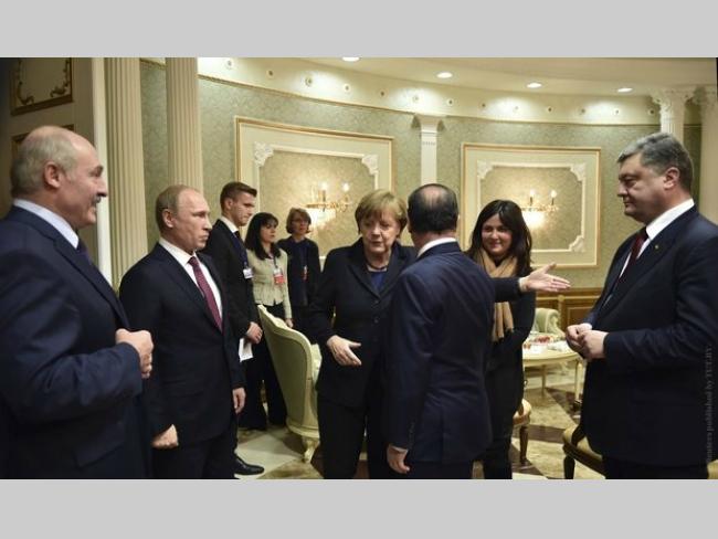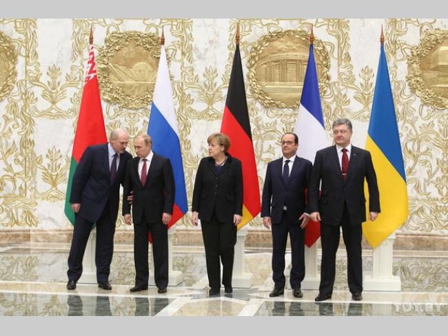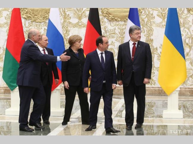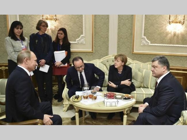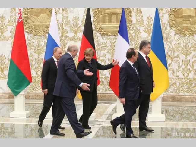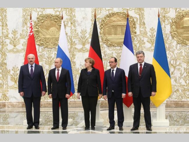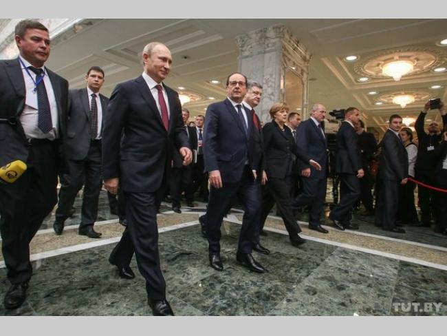 Во Дворце Независимости в Минске почти четырнадцать часов проходили переговоры по урегулированию кризиса в Украине в "нормандском формате". В них принимали участие президент России Владимир Путин, президент Украины Петр Порошенко, канцлер Германии Ангела Меркель и президент Франции Франсуа Олланд.