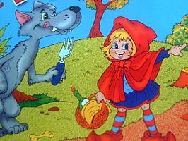 В частности, в сказке Дударя «Красная Шапочка» сцена встречи героини с Волком выглядит так: