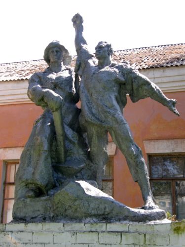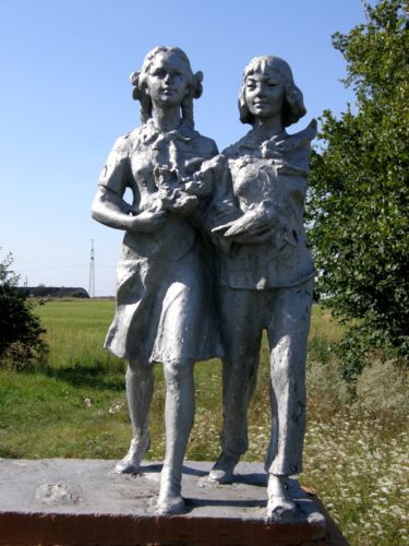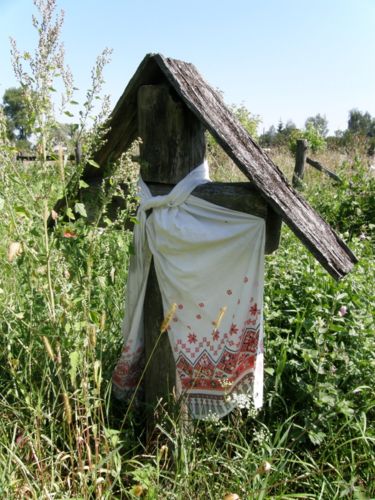 Чуть ли не в каждом селе стоят большие деревянные кресты Памяти жертв голодомора, а иногда по пути попадаются интересные памятники в виде парных фигур в духе "Рабочего и колхозницы", только почему-то одного пола.