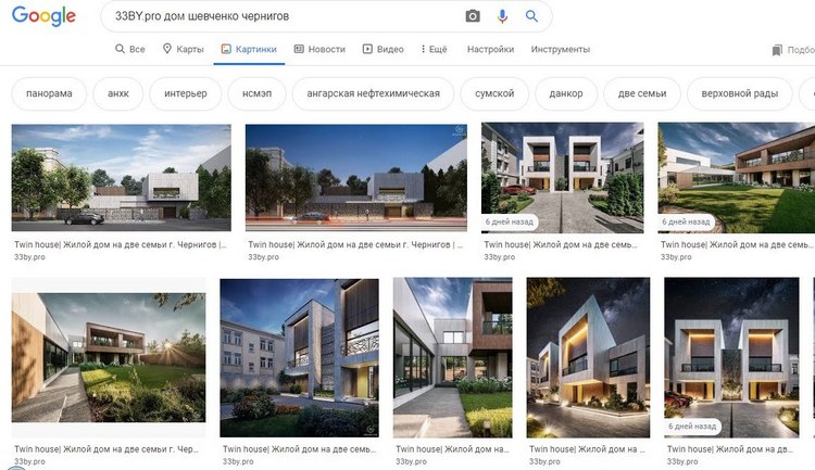 Если вбить в поиск Гугл запрос «33BY.pro дом шевченко чернигов» - то отобразятся фото, которые ахритектурная мастерская 33BY.pro загрузила на свой сайт 6 дней назад. Даже после удаления, если принудительно не переиндексировать страницу, текст и фото определенное время хранятся в кэше поисковика.