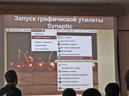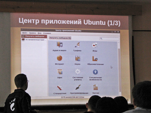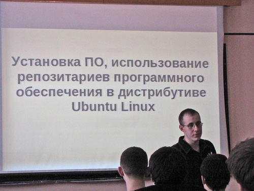 С дистрибутивом Ubuntu, участников семинара ознакомил один из разработчиков этой системы, выпускник ЧГТУ Алексей Молчанов (принять участие в разработке системы может любой желающий). Он рассказал о настройках системы, установке программного обеспечения, выборе среды выполнения.