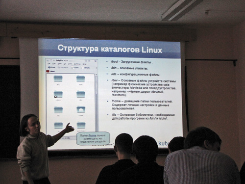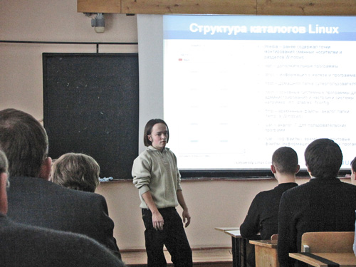 Программа семинара была насыщенной и рассчитана на новичков, желающих ознакомиться с этой операционной системой. Старший преподаватель кафедры Алексей Владимирович Лукин рассказал о дистрибутиве Fedora. Windows часто довольно трудно заставить работать так, как вам нужно, а иногда кажется, что это в принципе невозможно. В Linux, вы можете настраивать все! Эта система обеспечивает большую безопасность по сравнению с Windows-системами и работает на большем количестве оборудования: от 486-х процессоров до, новейших Pentium. Открытый код программы, открывает вам путь к свободе. Если вам не нравится, как что-то функционирует, вы можете, в конце концов, сами переписать код.
