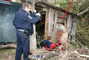 По словам свидетеля, убитая когда-то держала в этом сарае кур. А за два дня до убийства наведывалась в сарай, так как ей сказали, что там поселились бомжи.