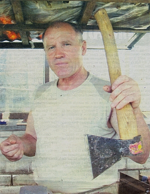 Анатолій Тихонов продає уральські сокири за 80 гривень