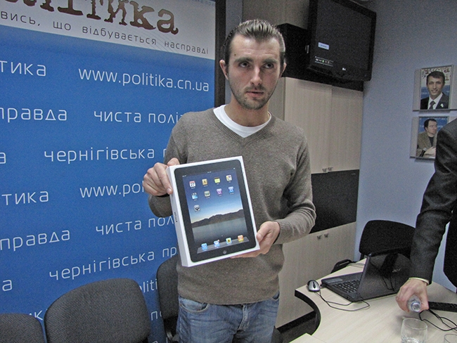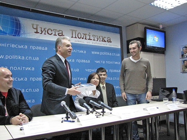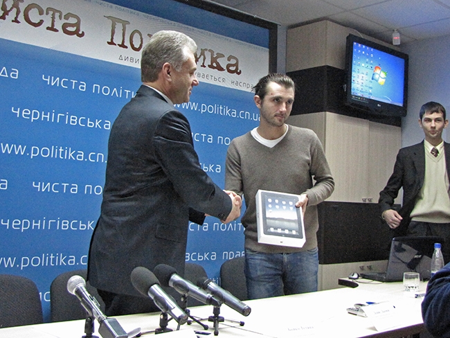 Присутній на цьому заході Чернігівській міській голова Олександр Соколов вручив переможцю головний приз конкурсу планшетний комп’ютер Ipad Apple.