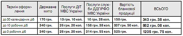 Вартість оформлення паспорта громадянина України для виїзду за кордон
