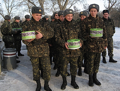 Конкретно на продукты тратится 18 грн. 62 коп., все остальное — электроэнергия, газ, оплата рабочих и др. Все продукты свежие, завозятся ежедневно. А производителей выбирают по качеству товаров: например, хлеб привозят из Черкасс, оказывается, там его пекут вкуснее. В столовой едят только солдаты срочной службы, контрактники получают денежную компенсацию.