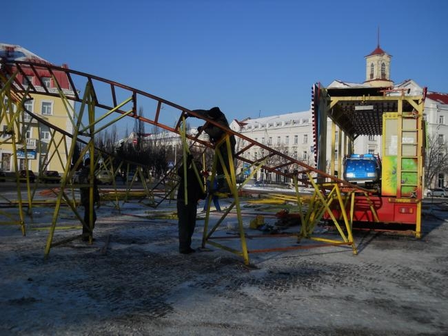 Во время сборки конструкций одного из аттракционов, постоял, понаблюдал за процессом. Мужчины в рабочих спецовках работали, быстро со сноровкой. Наверняка, такая процедура в их послужном списке не первая.