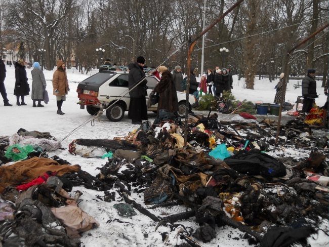 1-го января, в день рождения Бандеры, именно у сгоревшего храма прошел парад-митинг под черными знаменами.