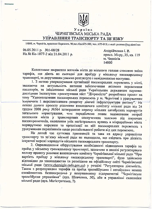 Та, нажаль, у відповідь ми отримали листа більше схожого на відписку, яка загалом просто відкидає всі альтернативні пропозиції громадськості. Розглянувши відповідь міської ради, можна зазначити наступне: