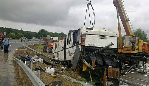 Прибывшие на место происшествия спасатели смогли поднять автобус с помощью подъемного крана. Как говорят очевидцы, ремонту транспортное средство не подлежит.