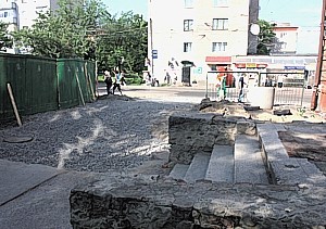 В этот раз Наталия Шкель, затеявшая стройку, она же собственница магазина «Калипсо», основательно подготовилась: более десятка крепких молодых людей плотной стеной стояли вокруг вырытого котлована. Пожилая жительница дома, попытавшаяся «прорвать оборону», упала и некоторое время лежала у них под ногами. Около десятка сотрудников милиции, не вмешиваясь, наблюдали за происходящим.