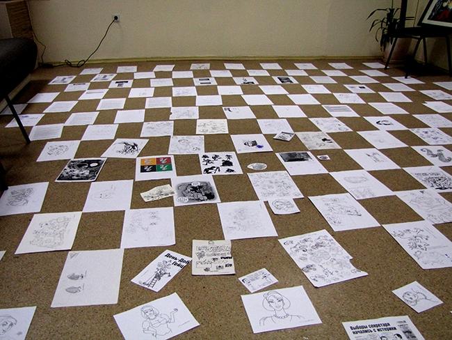 Даже сам художник не смог назвать точное количество работ, представленных на этой выставке. Произведения художника украшали все стены этого старинного здания (бывшее кафе «Людмила»), и не только стены. Много графических произведений лежало просто на полу, и посетители могли выбрать любой им понравившийся рисунок, и унести с собой в качестве подарка от художника.