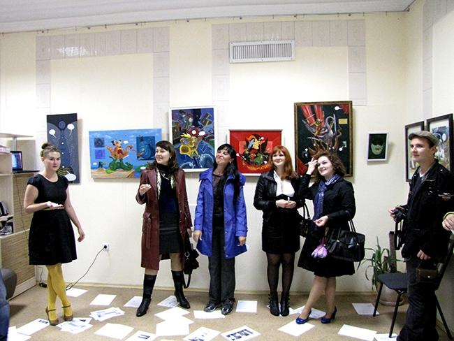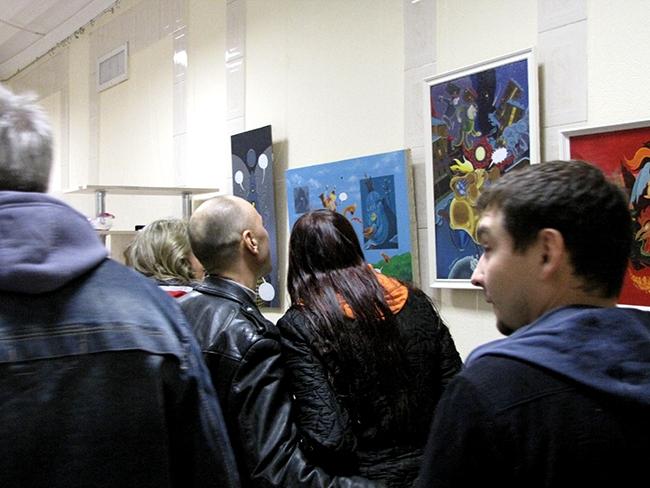 Несмотря на дождливую погоду, на открытие выставки пришло довольно много поклонников творчества художника. Посетителей выставки ждали забавные сюрпризы, подарки и боди-арт от Олега Синельника. А главное – заряд хорошего настроения!