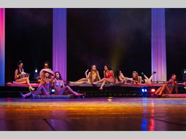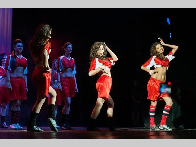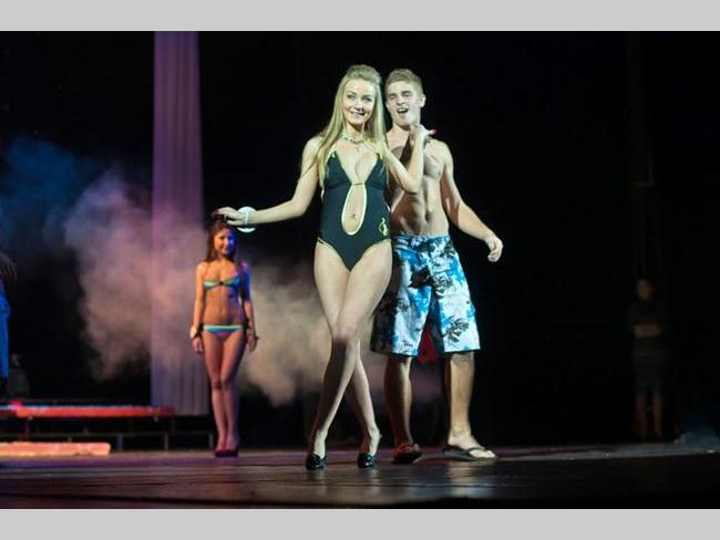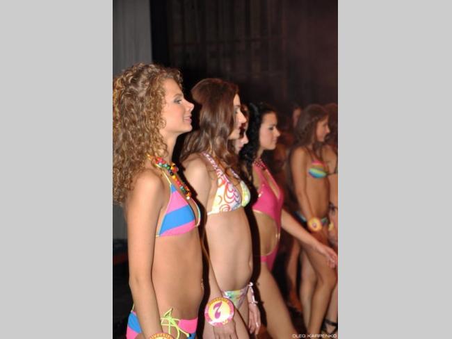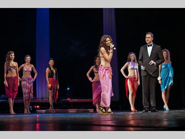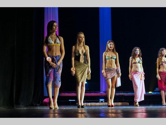 Девушки выходили на сцену четыре раза: представление, дефиле в спортивной форме и дефиле в купальниках. Главным аккордом, завершающим программу, стал выход в свадебных платьях.