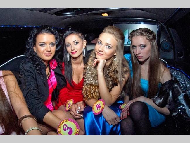 Начало празднику положил белый лимузин, который подвез девушек-участниц к красной ковровой дорожке, ведущей до дверей зрительного зала.
