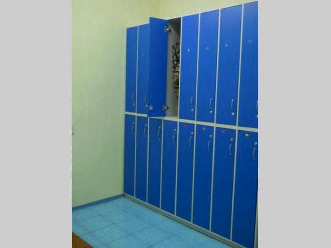 Раздевалки и душ после ремонта. Все – светлые, чистые и достаточно просторные. Для вещей – индивидуальные, закрывающиеся на ключ, кабинки.