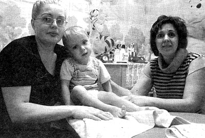 Артемка Заровский прижался к массажистке центра "Відродження" Ирине Зазай, рядом мама Галина Заровская