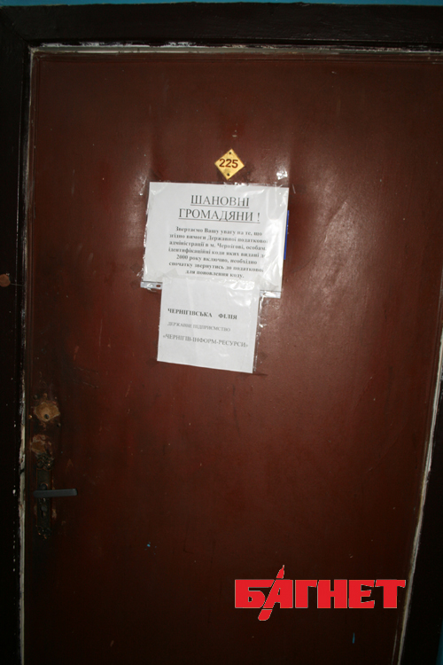 То есть изначально, в Чернигове берут 260-340 грн. дороже за оформление загранпаспорта, чем в Киеве. Дабы иметь полную картину происходящего, и понять, почему в киевском Межрегиональном центре (такое же официальное подразделение ГИРФЛ) граждане платят меньше (строго в рамках определенных законодательством платежей) мы, как нам и рекомендовали, обратились в городской ГИРФЛ по ул. Шевченко, 26. И чтобы вы думали? Там как раз, за одной из дверей (см. ниже фото) и обнаружился офис «Чернигов-Информ-Ресурсы».