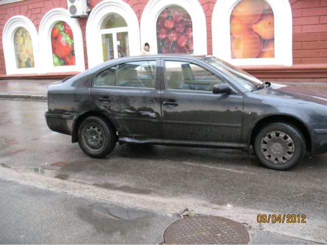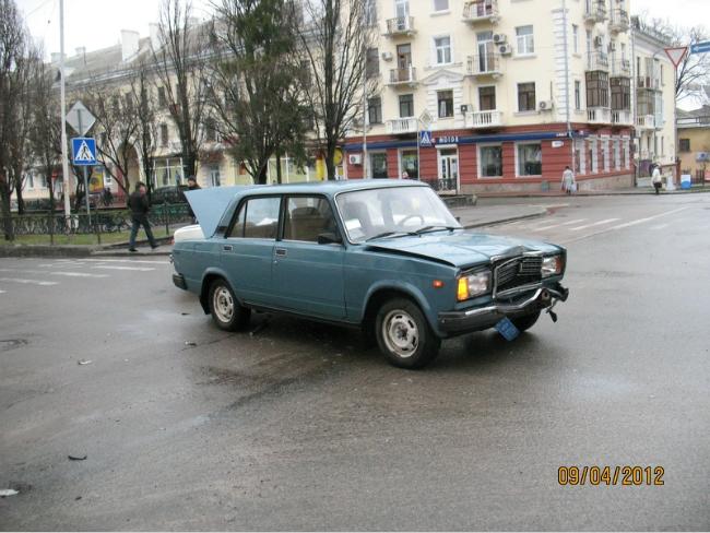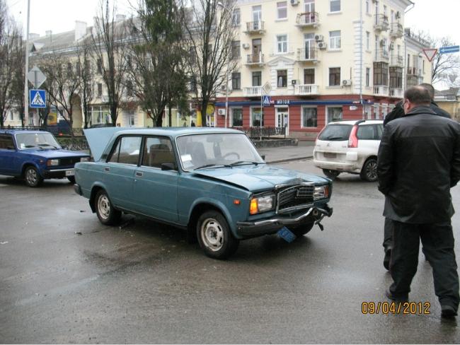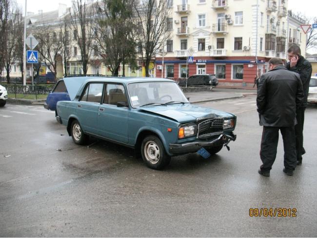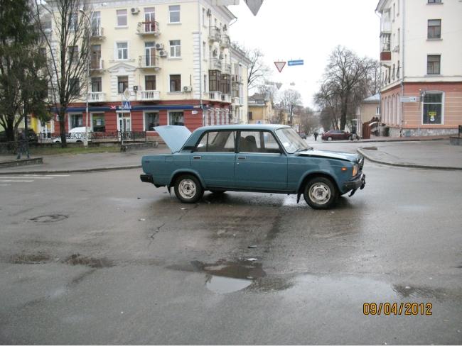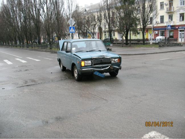 Сегодня около 16.40 на перекрестке проспекта Мира и улицы Коцюбинского произошло ДТП с участием милицейского автомобиля ВАЗ 2107. По предварительным данным водитель автомобиля SKODA не уступил дорогу автомобилю ВАЗ 2107. Пострадавших нет, водители от комментариев отказались, номерные знаки с милицейского автомобиля после появления журналиста прикрыли.