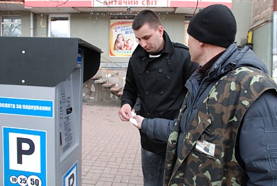 — Водим до паркомата, чтобы платили, объясняем: три гривны — полчаса, шесть - час. Чек один забирает водитель, а другой мы вешаем на лобовое стекло. После установки паркоматов вроде даже лучше стали оплачивать. Без паркомата в последнее время вообще плохо платили. А как с ними бороться? Поставил, ушел, пришел, уехал. Ни паркомат, ни парковщик не поможет, если человек платить не хочет. Но мы такие случаи фиксируем.