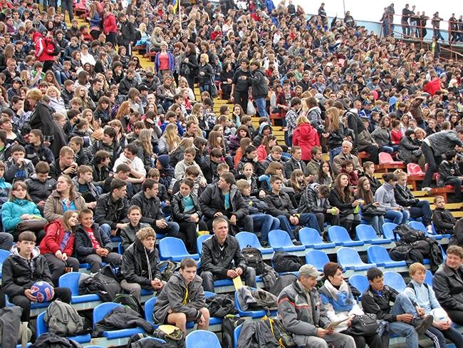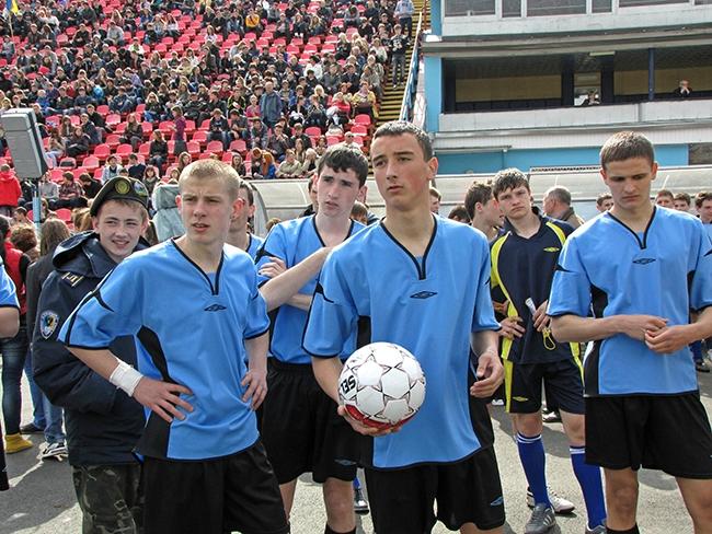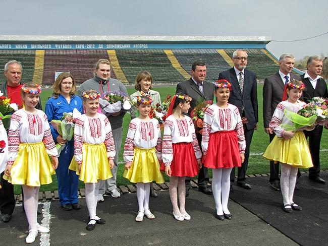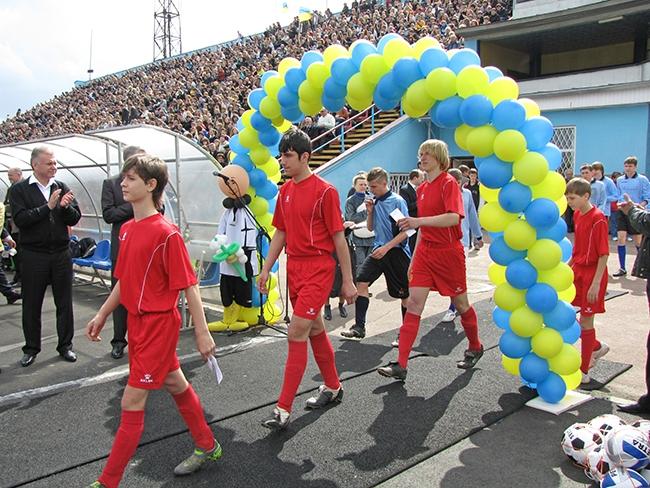 20 апреля, на стадионе им. Ю. Гагарина, было шумно и многолюдно. Такого количества зрителей не собирали даже матчи Чемпионата Украины по футболу. Здесь прошли торжества по случаю проведения финального матча областного этапа Национального Кубка школьного футбола ЕВРО-2012.