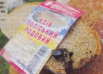 — Хлеб с майским жуком купила внучка Руслана. ПАО «Черниговского хлебокомбината» — «Хліб поліський подовий», овальный. Утром 1 мая я отрезала кусочек — смотрю, что-то черненькое. Начала ковырять. Оно упало на пол. Остальное, черненькое, осталось в хлебе. Дальше не стала резать. Нашла его. «Хрущ!» — говорю мужу.