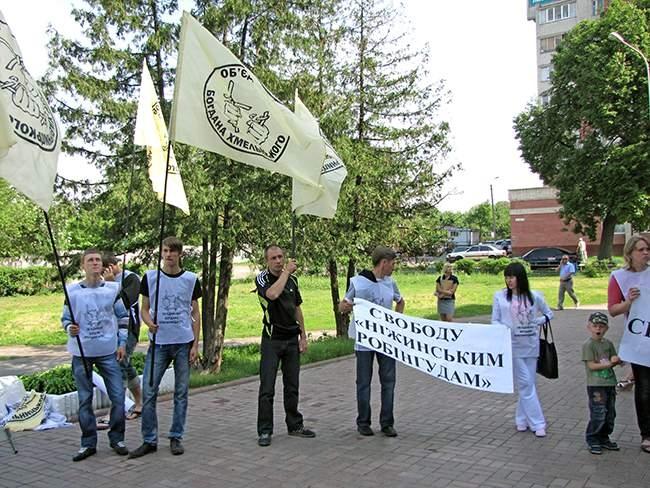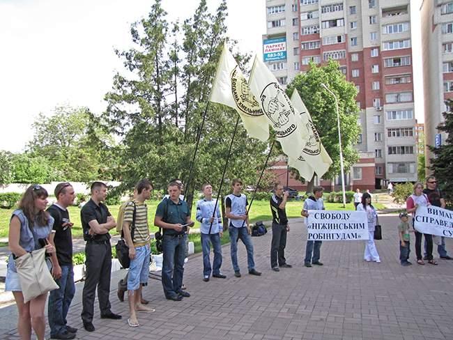 8 мая, в Деснянском районном суде г. Чернигова, рассматривалось дело по обвинению так называемых «Нежинских робингудов». Именно в этот день под стенами здания Деснянского районного суда собрались родственники подсудимых, представители общественных организаций, журналисты. Собравшиеся выступили с акцией в поддержку подсудимых.