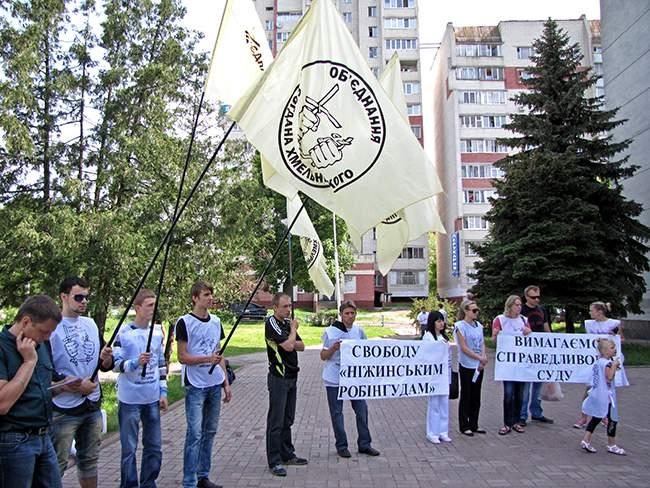 Напомним, что «Нежинские робингуды» известны в Украине через резонансные Нежинские события в 2009 — 2010 годах. Ребята боролись с наркоторговцами в своем городе, и методы борьбы были не всегда законны и гуманны. А сегодня они обвиняются в бандитизме и нападении на отдельных граждан.