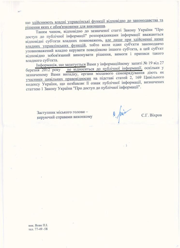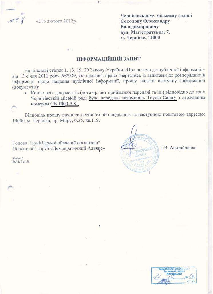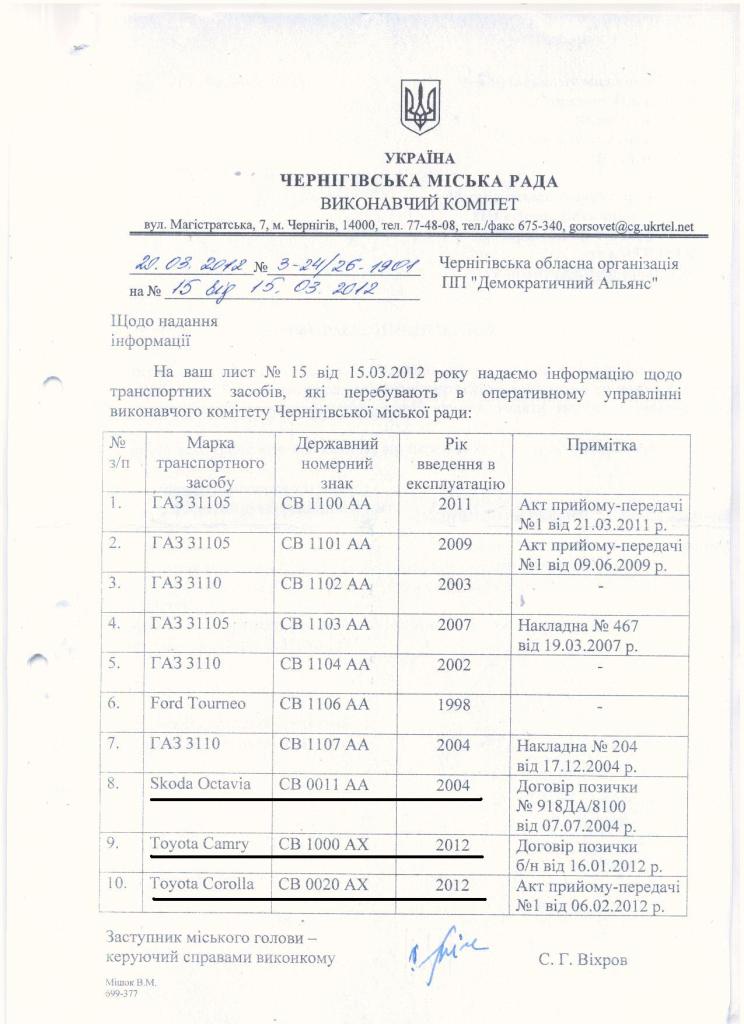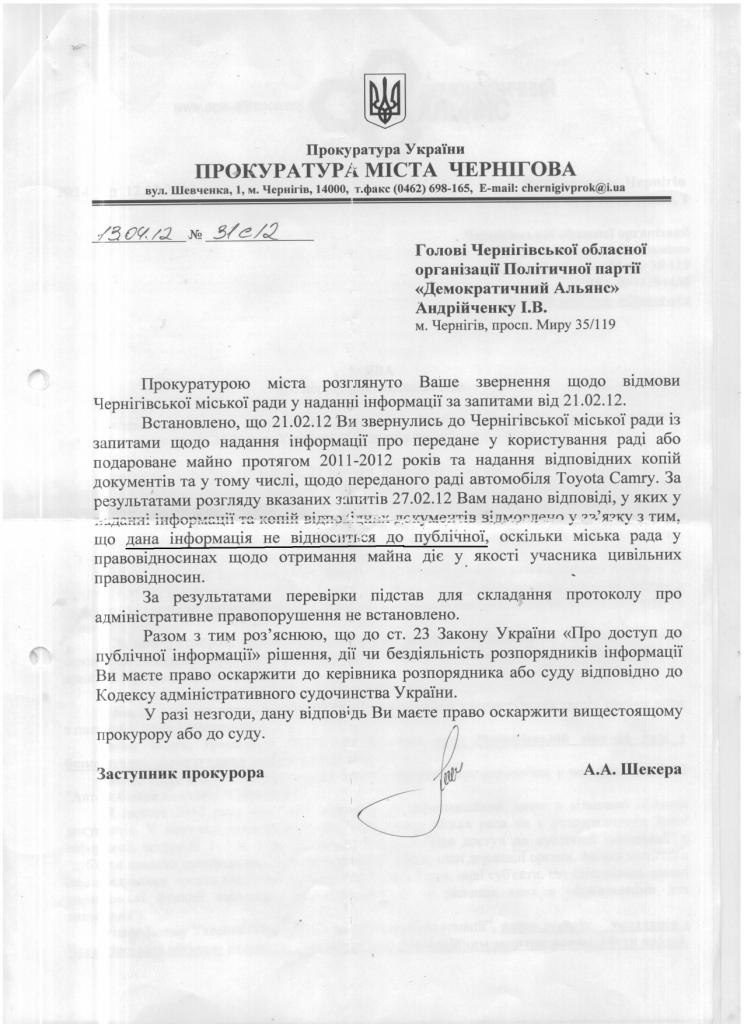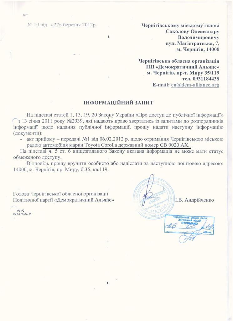 Для выяснения этого вопроса, ПП «Демократический Альянс» направил запрос в городской совет, целью которого было получение копий документов, в соответствии с которыми была осуществлена передача авто. На это, был получен ответ, что данная информация не относится к публичной.