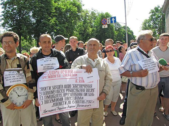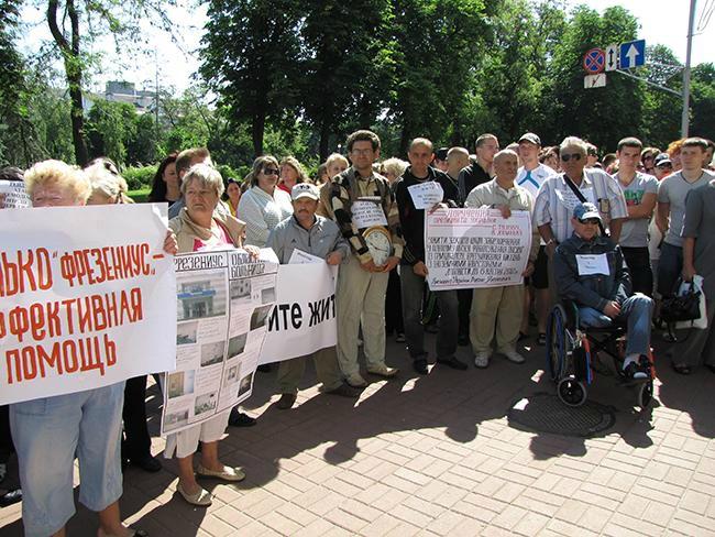 24 мая, в Чернигове под стенами облгосадминистрации, вновь собрались больные с почечной недостаточностью. Они пришли с родственниками и друзьями, чтобы выдвинуть руководству области требования по финансированию гемодиализа в частной клинике «Фрезениус» из областного бюджета.