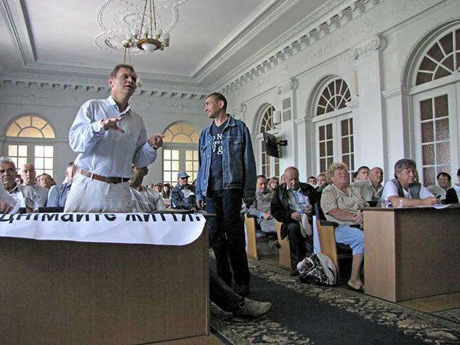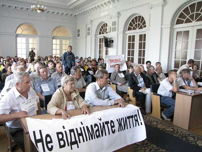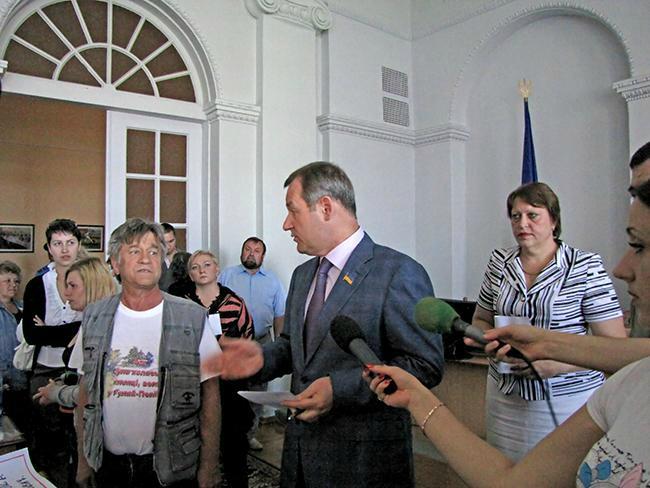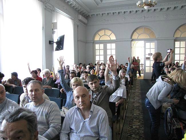 Узнав, что губернатор не сможет с ними встретиться, они прорвали милицейский заслон и заполнили актовый зал облгосадминистрации, обещая не покидать его пока их требования не будут удовлетворены.