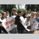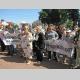 Участники акции протеста держат в руках плакаты: «Фрезениус – наша жизнь», «Не отнимайте жизнь», «Чиновники бьют по почках», «Только «Фрезениус» - эффективная помощь». Многие протестующие держат в руках электронные часы, символизирующие, что их жизнь остановится, как эти часы без батарейки.