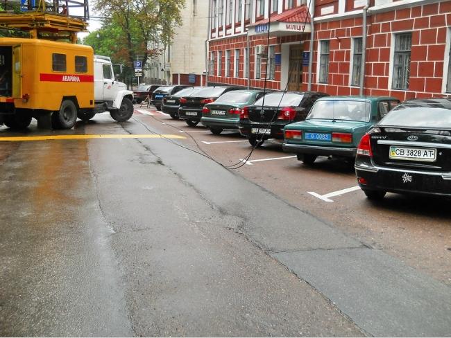 В среду, 13-го июня, примерно, в 10 часов утра, прямо напротив Черниговского городского отдела милиции оборвало троллейбусные провода.