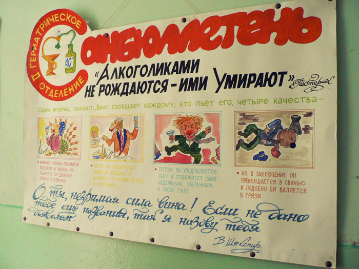Боротьба з алкоголізмом. Кажуть, агітація цієї стінгазети сильного враження на певну категорію підопічних не справляє