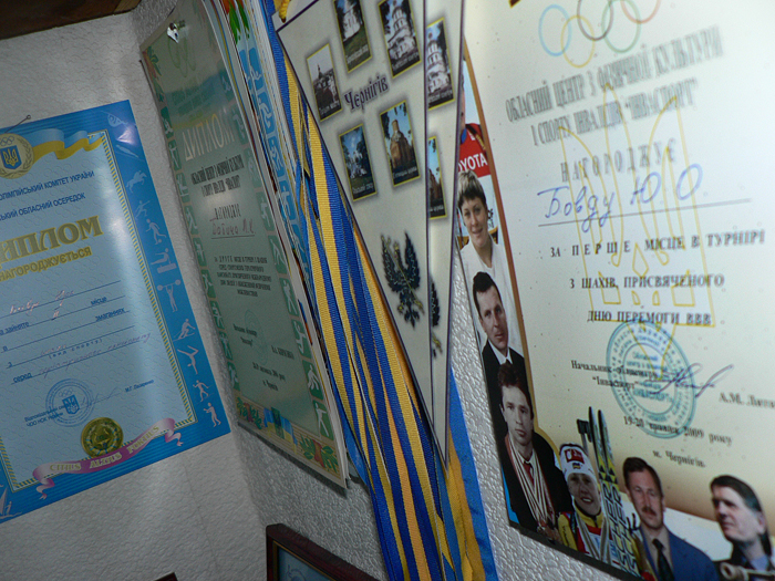 Деякі підопічні активно (наскільки можливо) займаються спортом. Я був у кімнаті, в куті якої завішано грамотами і медалями за призові місця у різних видах спорту, від шахів до легкої атлетики, які в різні роки завоювали мешканці пансіонату.