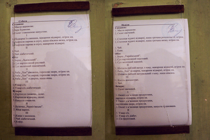 Меню у їдальні теж просте, без делікатесів. “Раніше, ще пару років тому, у нас фрукти були регулярно”, - каже начмед. Печально, що тут, як і всюди у нас — стає гірше. Зараз фінансування зменшилося, і вітамінами стареньких побалувати є можливість дуже нечасто.