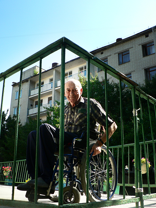 Олександр Григорович, 62 роки, з півтора років паралізований і прикутий до візка: "Мене брат сюди оформив. Він регулярно приїздить, провідує мене, не забуває... Збираюся жити. "