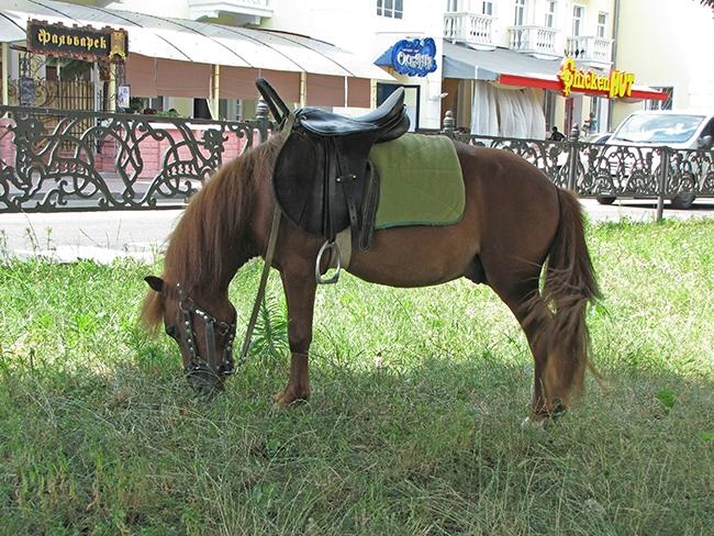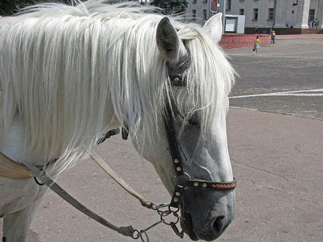 В эти жаркие, летние выходные дни, многие жители города видели на Красной площади красивых лошадок, которые мирно жевали травку и доброжелательно поглядывали на прохожих.