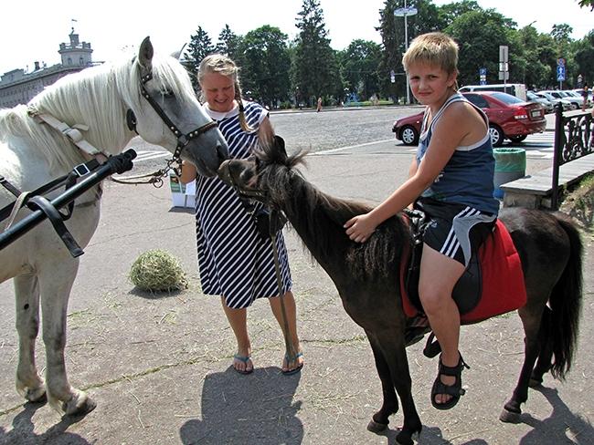 Проходящие мимо родители с детьми с удовольствием гладили и кормили животных. Дети бесплатно катались на лошадях под руководством опытных инструкторов, а еще с большим удовольствием все фотографировались с красивыми и добрыми лошадками.